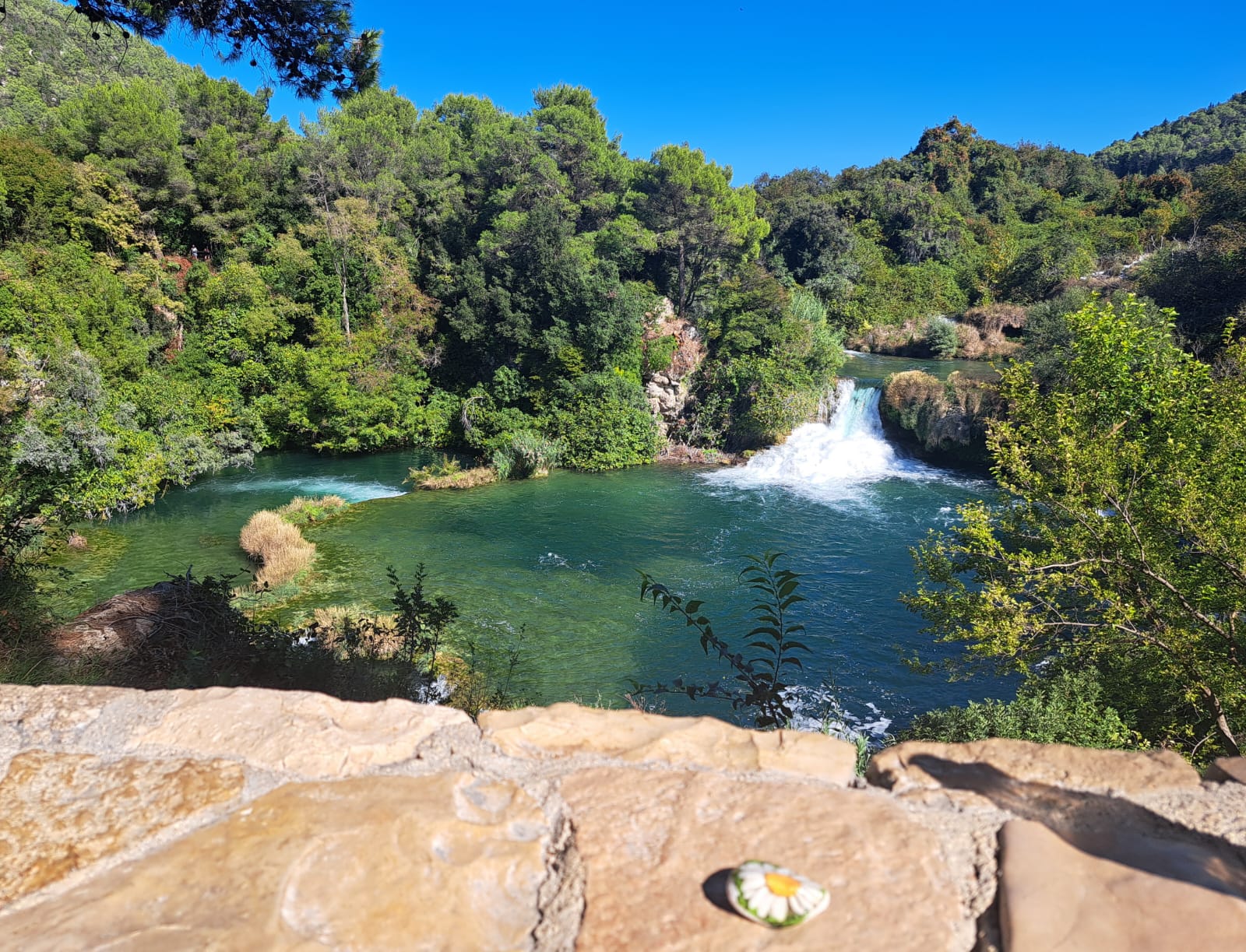 W naszej drodze towarzyszyły nam Kamyczki Nadziei, które pozostawiliśmy na głównym rynku miasta Trogir, noszącym imię Jana Pawła II oraz wśród krystalicznych wód wodospadów.